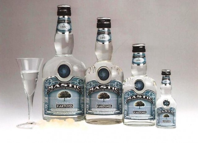 3)MASTIC D´ARTEMIS 25%vol: Ένα προϊόν μοναδικό στον κόσμο που γεννιέται από την καρδιά φυσικής μαστίχας Χίου, βασίζεται σε μυστική παραδοσιακή συνταγή του 1892, περνά από απόσταξη 1005 και παράγεται σε περιορισμένη ποσότητα αριθμημένων φιαλών. Ένα προϊόν διάφανο που βοηθά στη χώνευση, αρωματίζει την αναπνοή και επιδρά θεραπευτικά στο στομάχι.