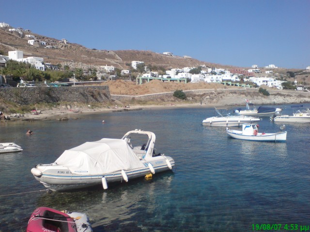 Η παραλία που βλέπει την Δήλο και το κανάλι μεταξύ Μυκόνου και Δήλου. Η παραλία με το πιο γνωστό πανηγύρι στο νησί, του Αι. Γιαννού στο τέλος του Σεπτέμβρη.