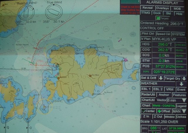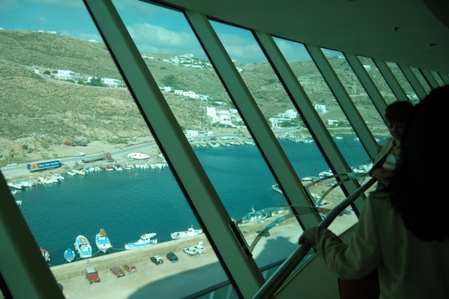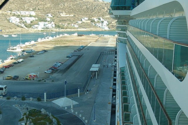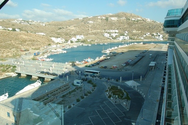 Αυτό είναι το ΝΕΟ Λιμάνι της Μυκόνου. Όταν κάποιος φθάσει στο νησί δια θαλάσσης και ιδιαίτερα με high spead θα αράξει στο νέο λιμένα της Μυκόνου στην περιοχή του Τούρλου. Εάν φθάσετε στο νέο λιμάνι και για να μην μείνετε εκεί πρέπει να πάρετε ένα τηλέφωνο για ταξί που είναι δύσκολο να βρεθεί καλόντας στο 2289023700 ή να ανεβείτε στο λεωφορείο που θα σας πάρει για τον παλαιό λιμάνι της Μύκόνου στην πόλη δηλαδή. Εάν έχετε κλείσει ξενοδοχείο μπορείτε να ρωτήσετε για τη μεταφορά σας τον ξενοδόχο. Σχεδόν κάθε ξενοδοχείο στην Μύκονο έχει ένα μικρό ή μεγάλο λεωφορείο για αυτές τις ανάγκες.