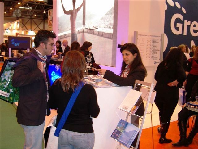 αρμόδιος επί θεμάτων Τουρισμού και Πρόεδρος του Σωματείου των Ενοικιαζομένων Δωματίων & Διαμερισμάτων Μυκόνου κ. Αθαν. Κουσαθανάς-Μέγας, ο Δημοτικός Σύμβουλος και Πρόεδρος της Ένωσης Εμπορο-επαγγελματιών Μυκόνου κ. Ιωάν. Κονταράτος, από το Σωματείο των Ενοικιαζομένων Δωματίων & Διαμερισμάτων η κα Μαρία Κουκά και ο αρμόδιος για τα θέματα δημοσίων σχέσεων και προβολής του Δήμου κ. Μιχάλης Ασημομύτης.Το περίπτερο της Ελλάδας και το stand της Μυκόνου επισκέφτηκε, αμέσως μετά τα επίσημα εγκαίνια της έκθεσης, ο Βασιλιάς της Ισπανίας Χουάν Κάρλος I με την Βασίλισσα Σοφία, την Τετάρτη 30 Ιανουαρίου, πρώτη ημέρα λειτουργίας της έκθεσης, στις 14.00 τοπική ώρα. Μέσα στο ιδιαίτερα φιλικό και ζεστό περιβάλλον που συνηθίζει να έχει το περίπτερο της Μυκόνου, το βασιλικό ζεύγος συνομίλησε με τον Αντιδήμαρχο Μυκόνου και δέχθηκε, εκφράζοντας ιδιαίτερη χαρά, αναμνηστικά δώρα από το Δήμο.